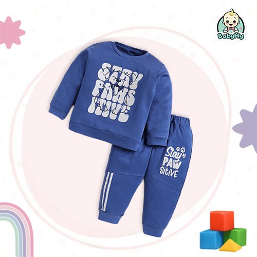 Featuring a playful paw print and the adorable message “Stay Pawsitive,” this set is available in warm, soothing tones that bring joy to both babies and parents alike. Ideal for infants aged 3 to 24 months, the set offers a relaxed fit for unrestricted movement during playtime, nap time, or casual outings.